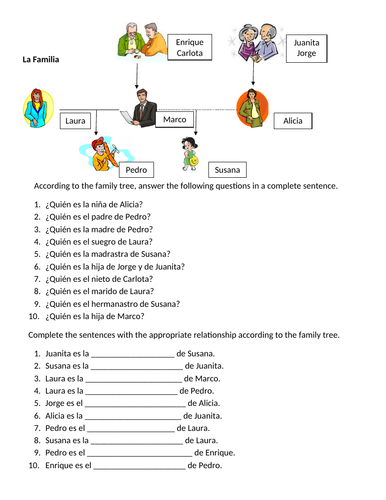 .family tree and answer some simple questions about the family members relationships.